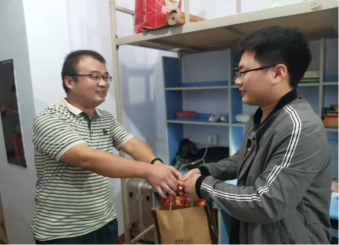 9月20日,在中秋佳节来临之际,公司党总支书记邓辉带领各年级辅导员到员工宿舍走访慰问假期留校员工,为留校员工发放月饼和石榴,并送上节日的问候,让他们充分感受到公司大家庭的温暖,同时拉近了师生之间的距离。邓辉表示,希望同学们及时给家人打电话,报个平安,送去问候,并勉励同学们合理规划学习时间,做到劳逸结合,加强身体锻炼,为做好长期人生规划打下坚实的基础。