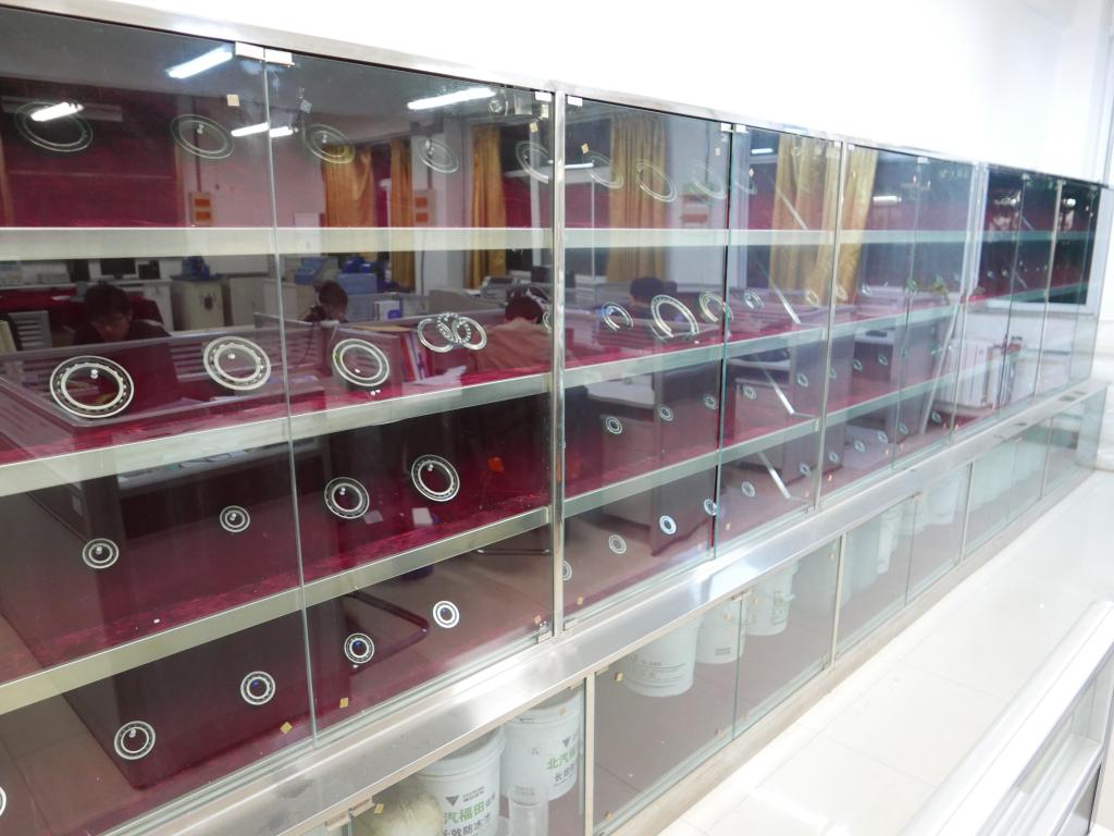 轴承实验室主要对深沟球轴承、角接触球轴承、双列角接触球轴承和圆柱滚子轴承等的研究分析,针对实际工作中轴承的振动、温升、速度及噪声等问题进行检测,通过研究分析设定方案进行试验,进而提高轴承的性能。本实验中主要有各种类型轴承和润滑油展柜及轴承摩擦力矩测量仪、激光钢球粗糙度测量仪、轴承振动测量仪和高速轴承试验机等,为对轴承的研究分析提供基础条件。