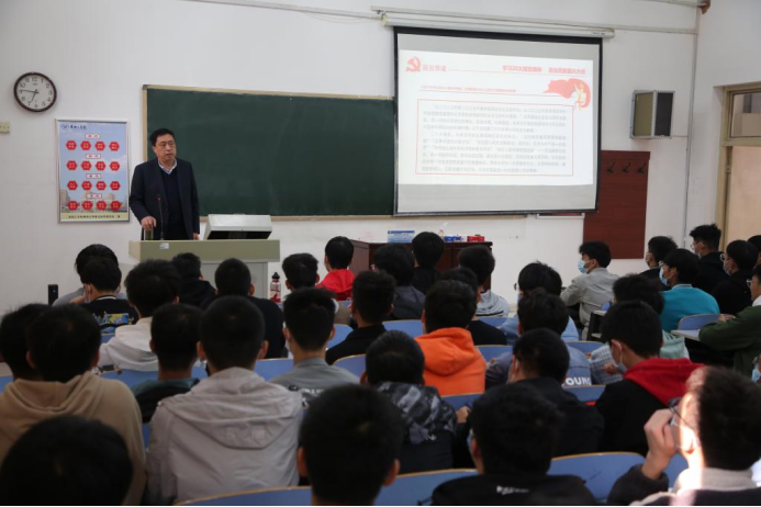 为深入学习贯彻党的二十大精神,11月1日上午,副董事长李凯灿以《学习二十大报告 担当民族复兴大任》为题,为williamhill中国官方网站2022级机械设计制造及其自动化(数控方向)专业员工讲思政课。